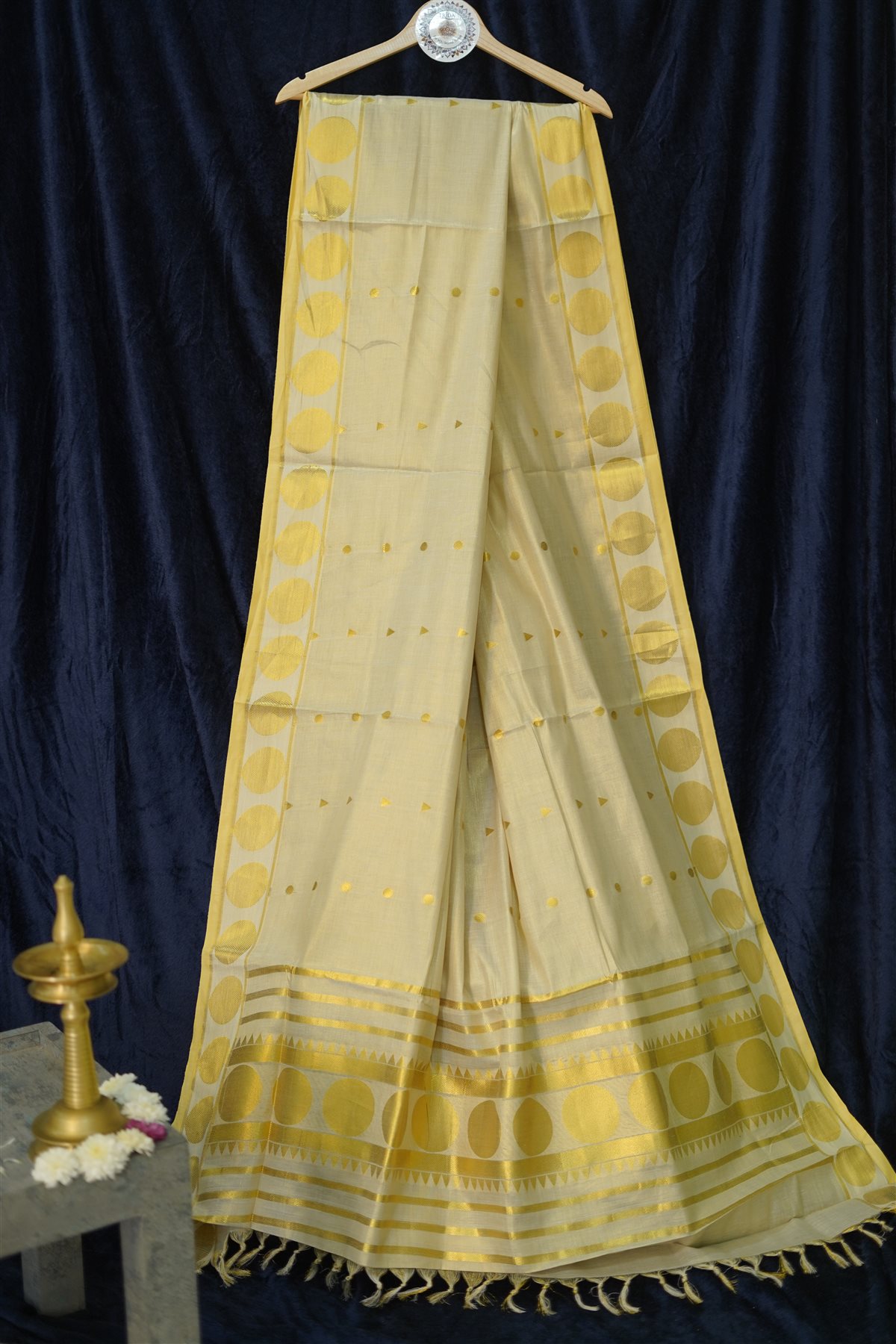 Bring home subtle elegance with this beautiful soft yellow saree highlighted by delicate gold woven motifs